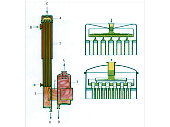 除了管材尺寸以外,選擇合適的液體分布裝置對獲得潤濕很重要,兩種液體分布裝置。由于加熱管中液體量低且流速快,產(chǎn)品停留時間頗為短暫,因此,可以溫和地蒸發(fā)熱敏性物料。